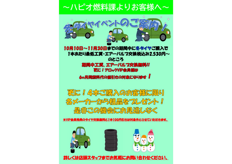 ガソリンスタンドからのお知らせ