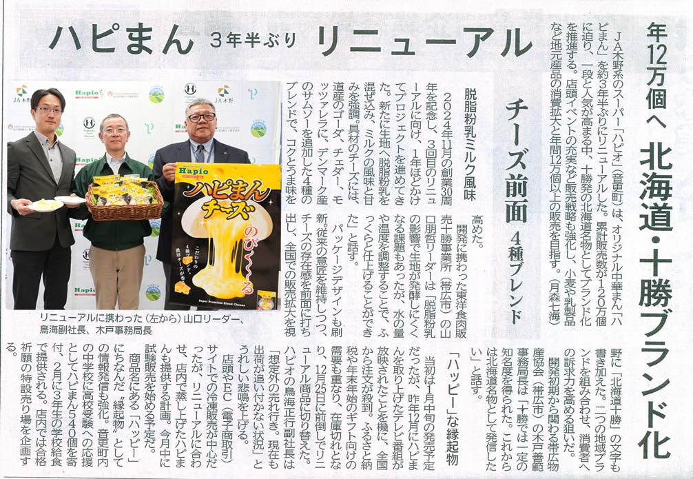 ハピオオリジナルの中華まん「ハピまん(チーズ)」が生まれ変わりました!